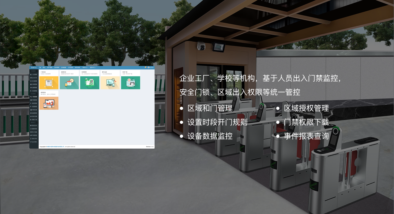 综合管理平台对系统内的各个子系统进行了统一管理,实现各子系统彼此之间的信息交换和数据共享,将传统意义上的智能卡应用、出入管理和多媒体信息显示进行有机融合,在便于管理的同时,又将各功能模块延伸和扩展。