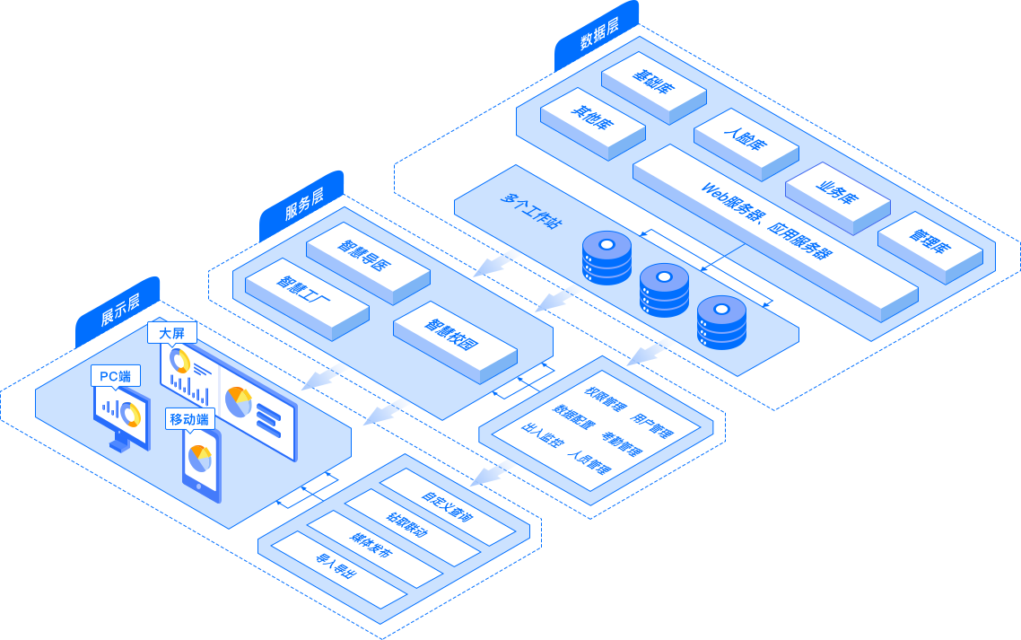 综合管理云平台系统基于TCP/IP部署,系统以B/S和C/S相互结合的方式,在管理层上采用B/S架构,实现了人员、车辆数据的录入、修改、删除以及数据查询等操作,在应用层采用C/S架构,操作简单,界面友好,这样组合可以使用B/S和C/S架构各自的特点得到更加充分的体现和应用,同时管理云平台还可以与其他环境监测等系统对接,实现系统功能应用的延伸和拓展。